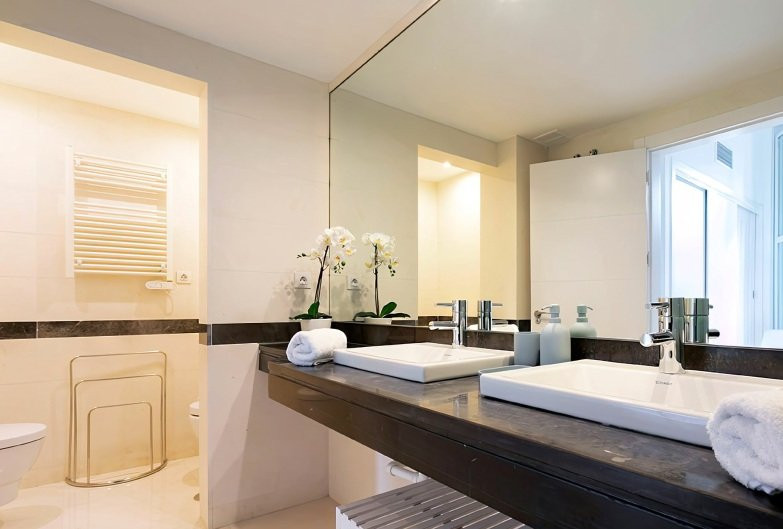 băi finisate cu piatră naturală, marmură neagră și obiecte sanitare premium