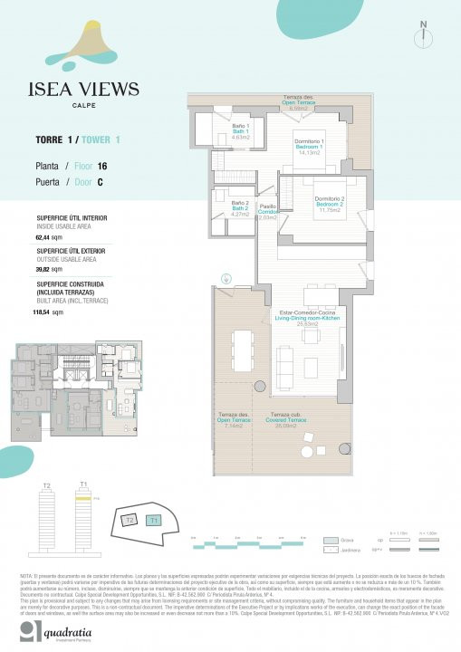 Case cu 1, 2 și 3 dormitoare, cu terase mari. Zone comune spațioase cu grădini, piscină, teren de paddle, zonă pentru copii, sală de sport și piscină infinită cu vedere la mare. Oriunde te uiți, privirea ta nu va avea limite. În fața turnurilor Isea Views se află cele mai bune plaje din Calpe și Las Salinas (în spate). Flamingo vor fi singurii tăi vecini.