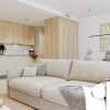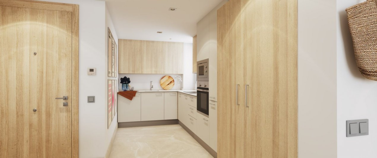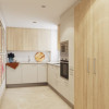 Echipamente: cuptor electric, cuptor cu microunde, plită cu inducție, hotă, frigider și mașină de spălat vase încorporate, mașină de spălat rufe.