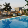 Piscină pe acoperiș, finisaj din gresie gresite, iluminată.