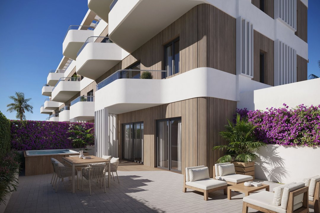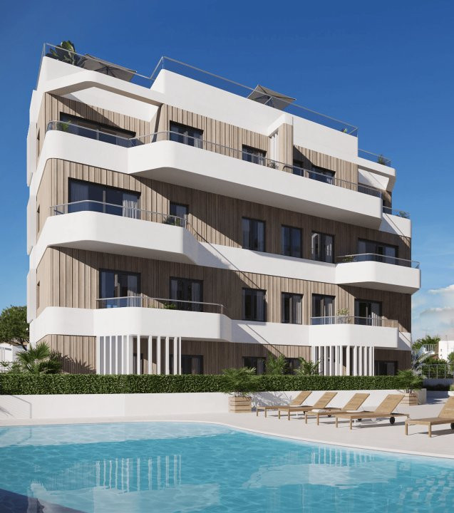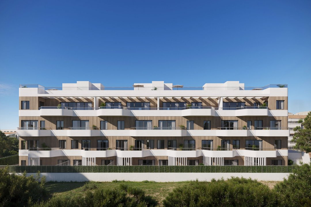 Fațadele în tonuri de alb, completate de accente din lemn natural, creează o estetică modernă și echilibrată. Ferestrele ample și terasele generoase permit o conexiune naturală între interior și exterior, valorificând la maximum lumina naturală și climatul blând al Costa Blanca.