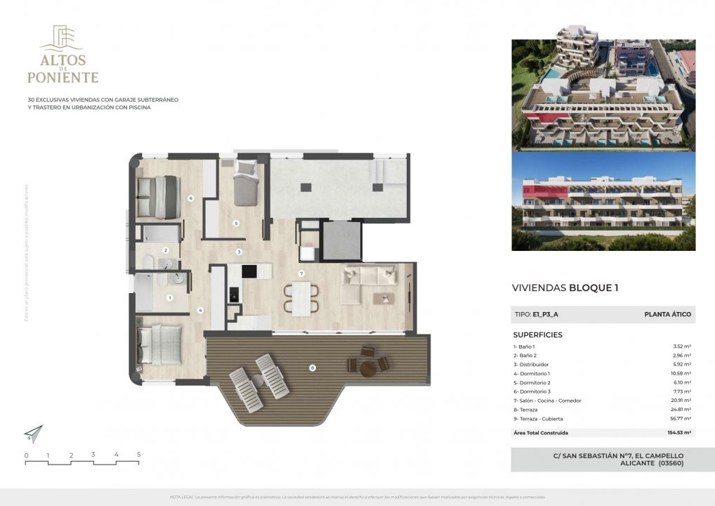 Altos de Poniente este un nou ansamblu rezidențial boutique, amplasat într-una dintre cele mai apreciate zone ale Costa Blanca, la doar câțiva pași de Playa Muchavista. Proiectul se bucură de o locație privilegiată, unde liniștea, proximitatea mării și accesul rapid către servicii premium se îmbină perfect cu conexiunile excelente către Alicante și El Campello.