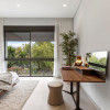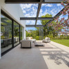 Living spațios cu ferestre largi și acces direct către terase, grădină și piscină privată