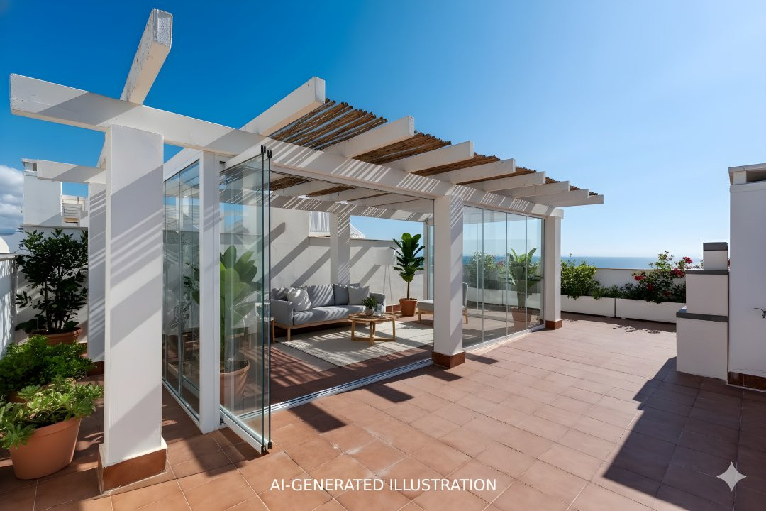 Located in the peaceful setting of Doña Julia Golf Resort, this beautifully maintained penthouse offers an intelligent layout, generous outdoor spaces, and breathtaking views over the Mediterranean Sea and the golf course.