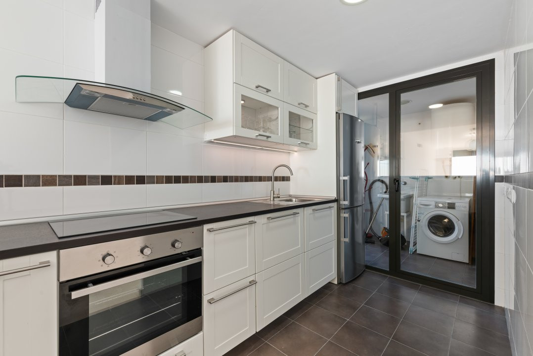 The interior is in excellent condition and includes a fully equipped kitchen, separate laundry room, and built-in wardrobes in both bedrooms, combining comfort with functionality.
