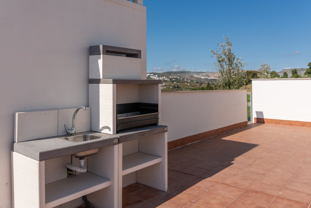The 58 m² rooftop solarium, equipped with a built-in barbecue, provides an ideal area for entertaining family and friends while admiring the panoramic scenery.