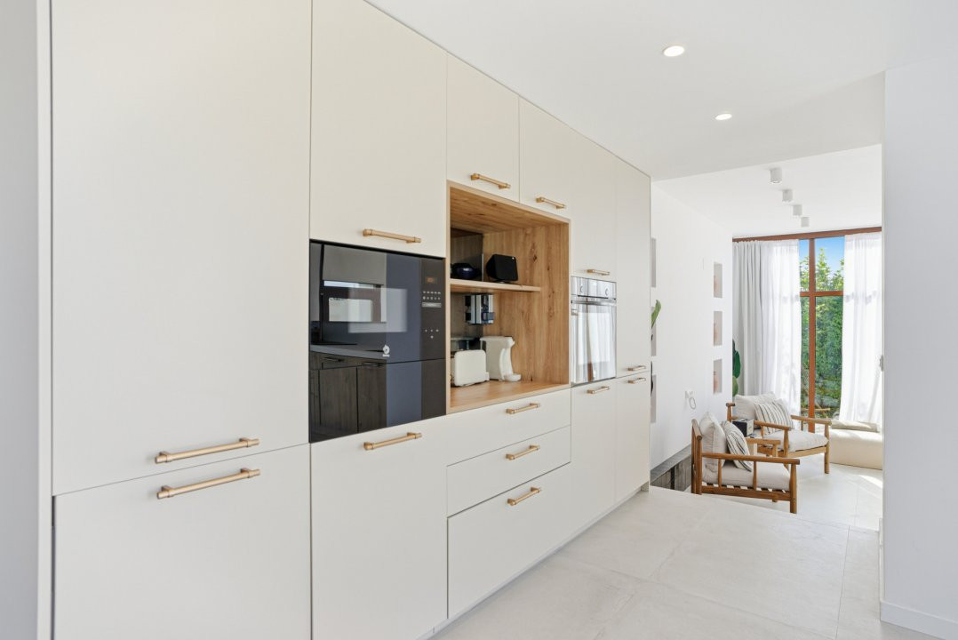 Designed for contemporary Mediterranean living, the home offers generous interior volumes, seamless open-plan spaces, and abundant natural light throughout. With its south-west orientation, private pool, and expansive solarium boasting sea and mountain views, this residence effortlessly combines privacy, comfort, and resort-style living.